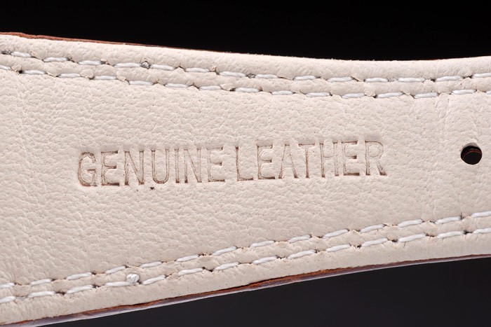 Bracelet: Heat embossed Audemars Piguet brown crocodile leather strap with double white stitching and Audemars Piguet engraved stainless steel fold-in clasp