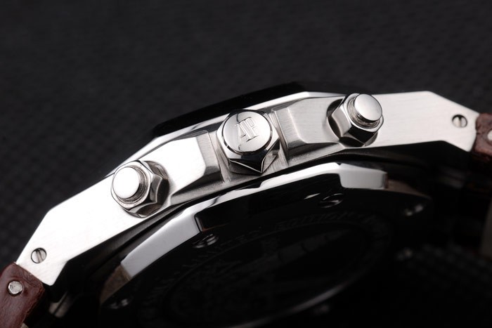 Back: Brushed stainless steel screwed down back with Audemars Piguet logo and engravings
