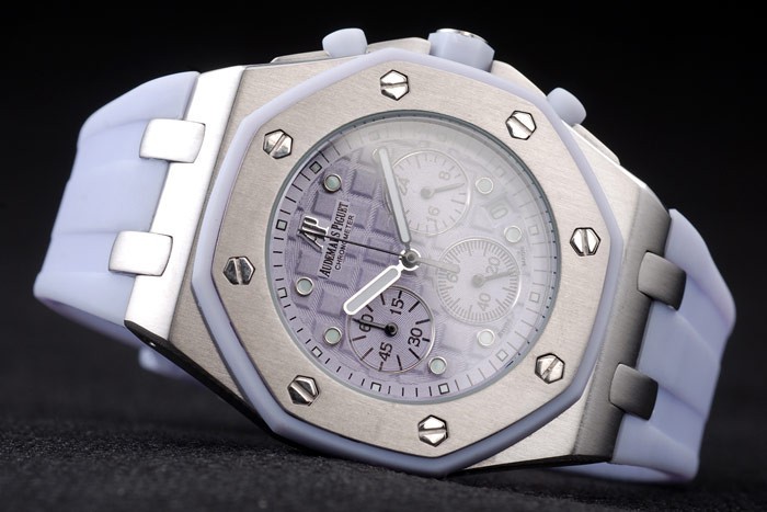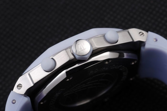 Back: Brushed stainless steel screwed down back with Audemars Piguet logo and engravings