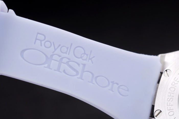 Bracelet: Audemars Piguet Royal Oak Offshore embossed lilac rubber strap with Audemars Piguet engraved polished stainless steel fold-in clasp