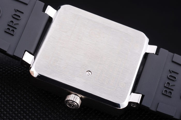 Bracelet: Bell&Ross logo and product code embossed black rubber strap with stainless steel hook-buckle clasp