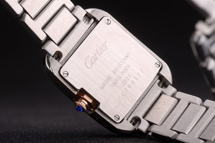 Back: Brushed stainless steel screwed down back with Cartier engravings