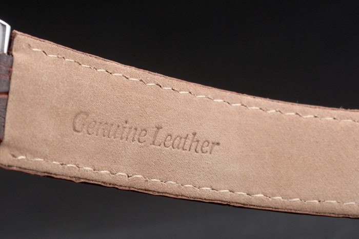 Bracelet: Cartier heat embossed brown crocodile leather strap with polished stainless steel fold-in buckle clasp