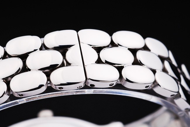 Bezel: Oval-shaped polished stainless steel bezel