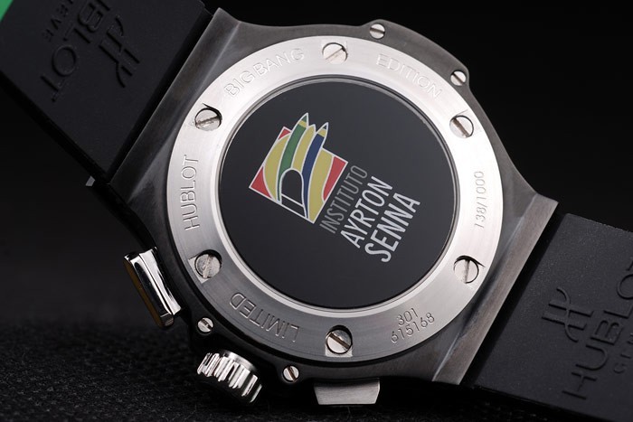 Back: Screwed down stainless steel back with Instituto Ayrton Senna engraving and Limited Hublot Big Bang Edition inscribed on it