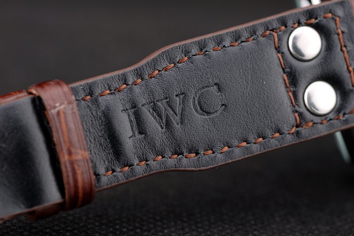 Bracelet: IWC heat embossed brown crocodile leather strap with IWC engraved brushed stainless steel hook-buckle clasp