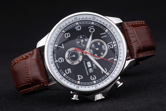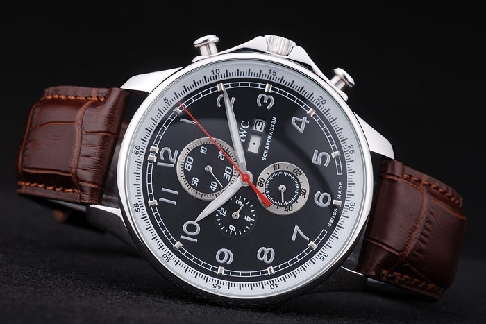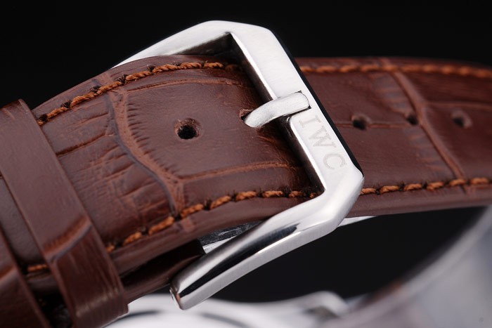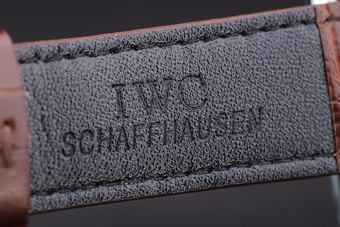 Bracelet: IWC Schaffhausen heat embossed brown crocodile leather strap with IWC inscribed stainless steel hook-buckle clasp