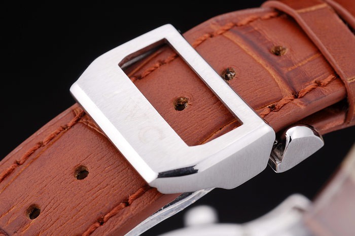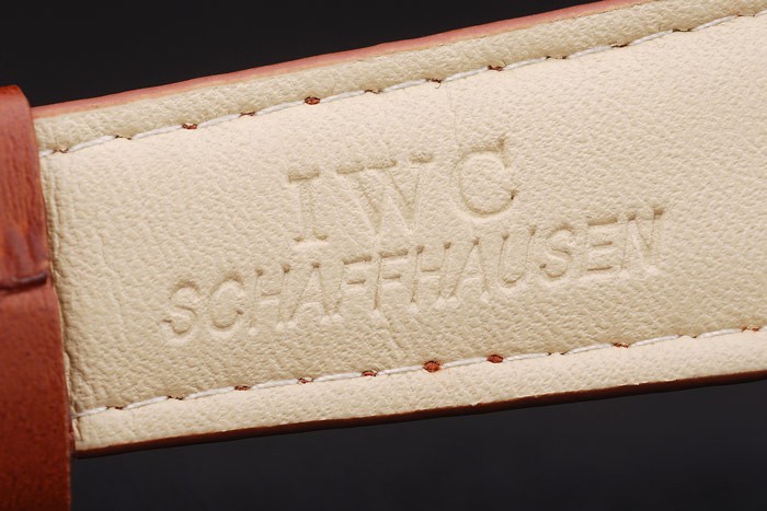 Bracelet: IWC Schaffhausen heat embossed brown crocodile leather strap with IWC inscribed stainless steel hook-buckle clasp