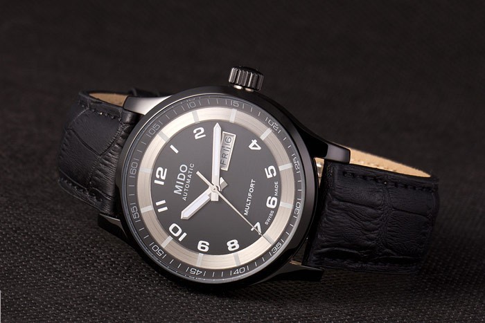 Mido Multifort Black Croco Leather Strap Black-Silver Dial 80296