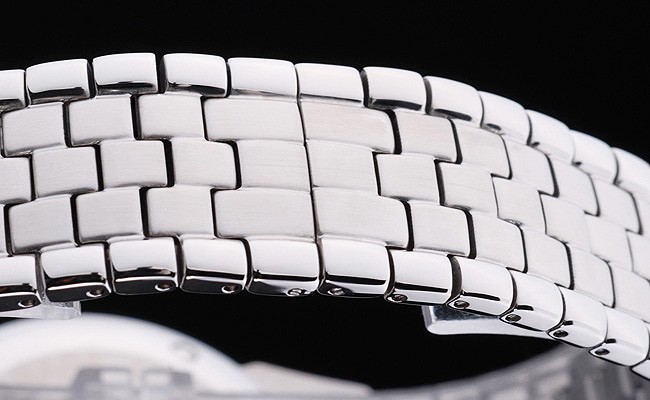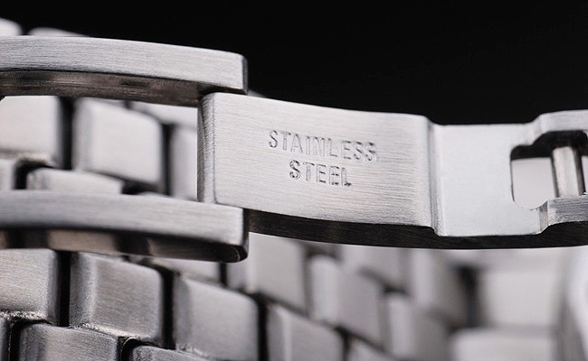 Crown: Polished stainless steel cutwork crown with Omega logo