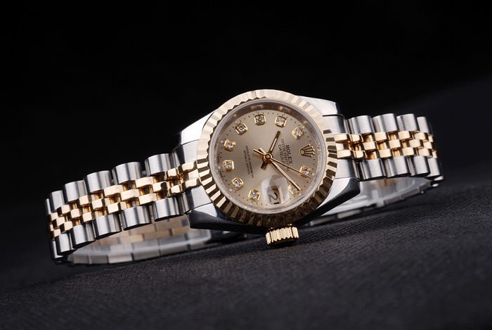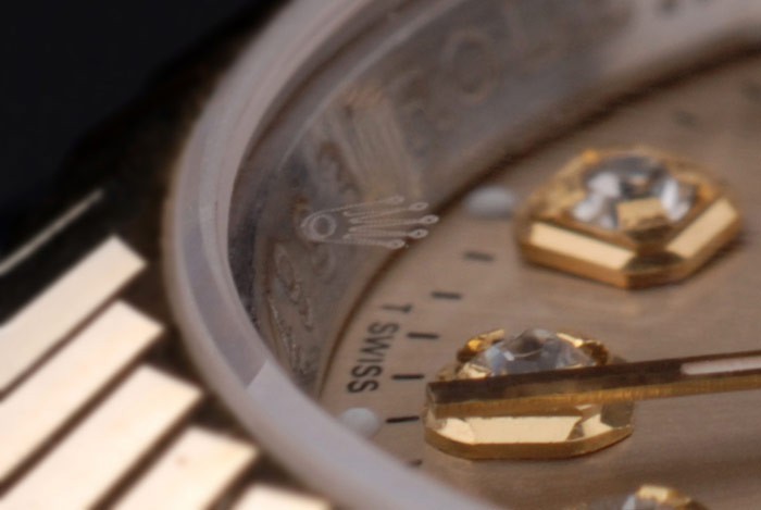Crown: 18k yellow gold plated steel cutwork crown with Rolex logo