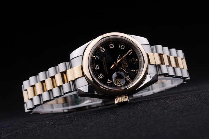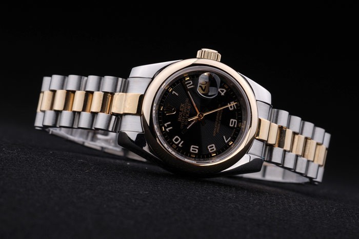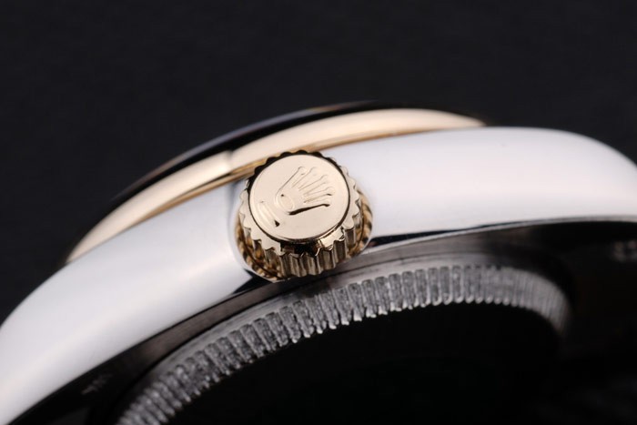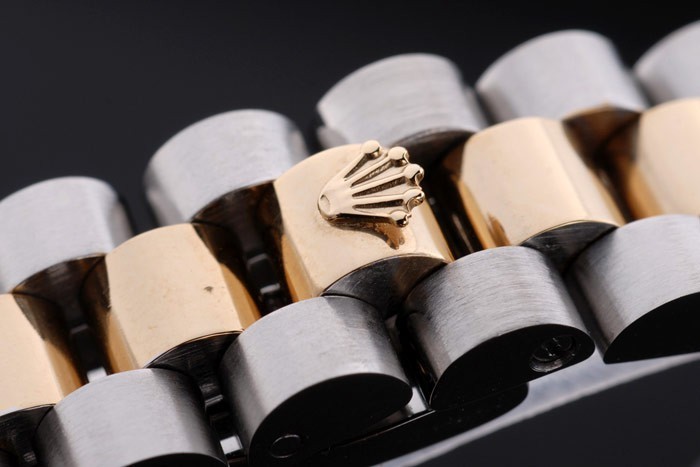 Crown: 18k yellow gold plated steel cutwork crown with Rolex logo