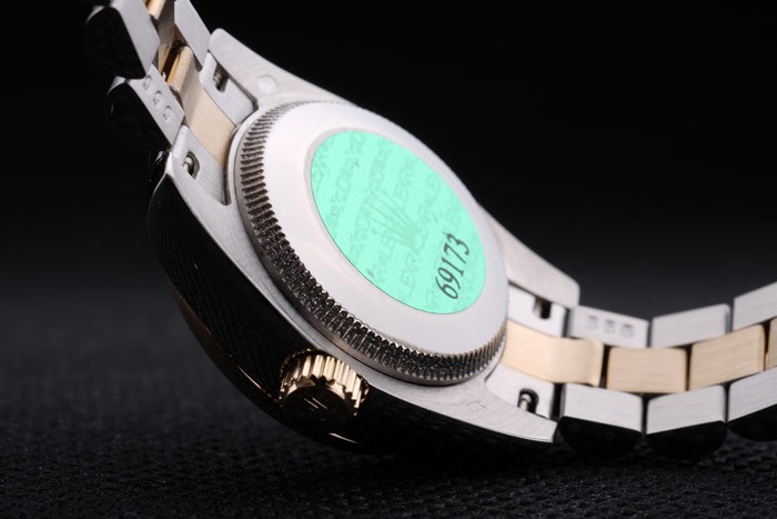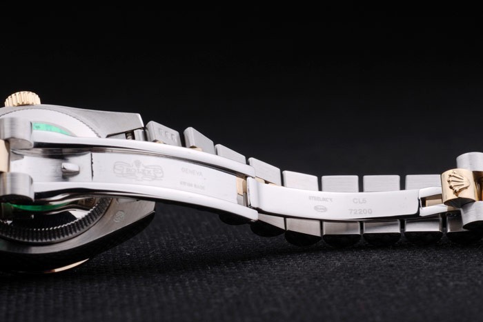 Back: Stainless steel push-in case back with green Rolex logo stamp