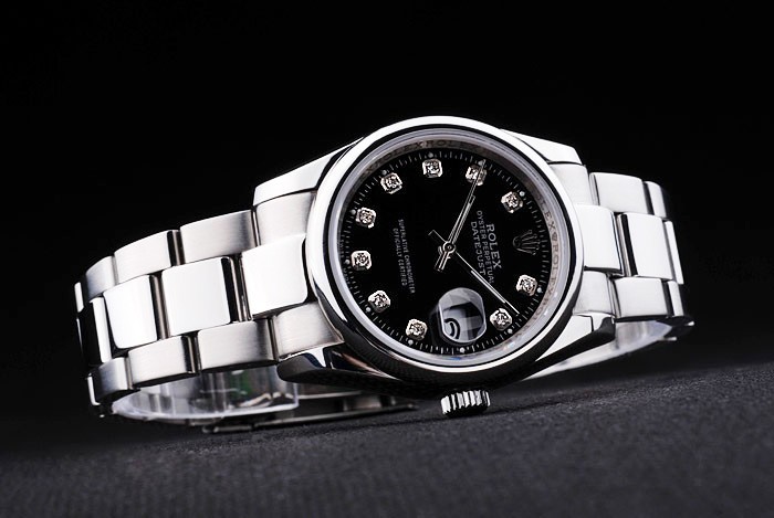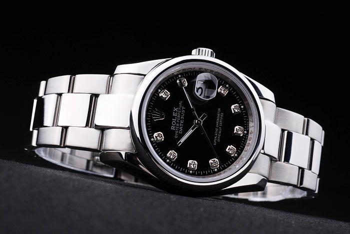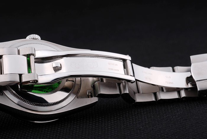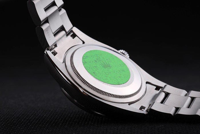 Back: Stainless steel push-in case back with green Rolex logo stamp