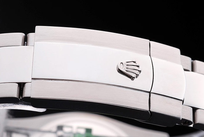Bracelet: Brushed and polished stainless steel bracelet with Rolex engraving fold-in deployment clasp displaying the Rolex logo