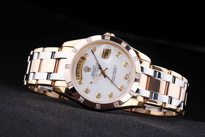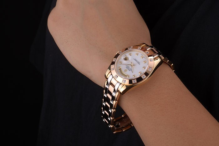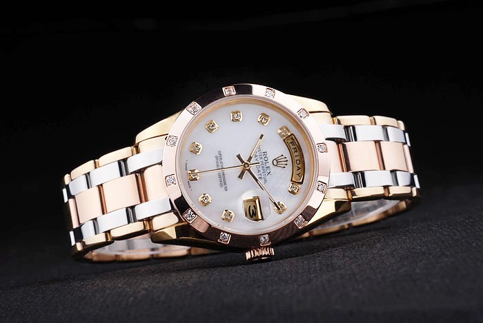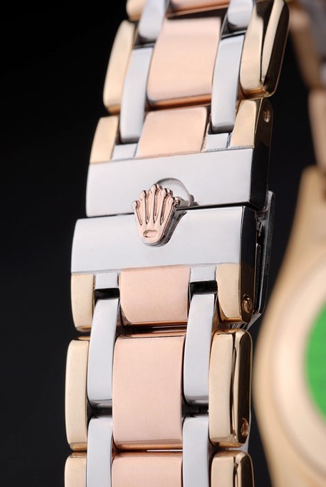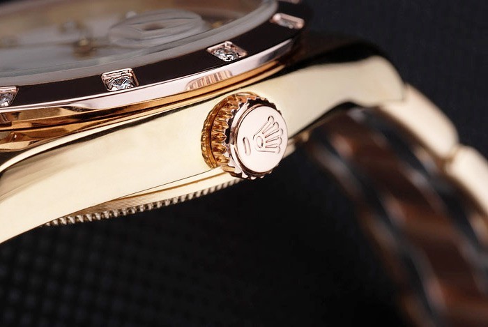 Crown: 18k rose-gold plated steel cutwork crown with Rolex logo