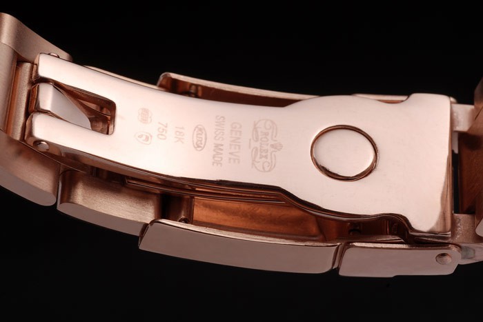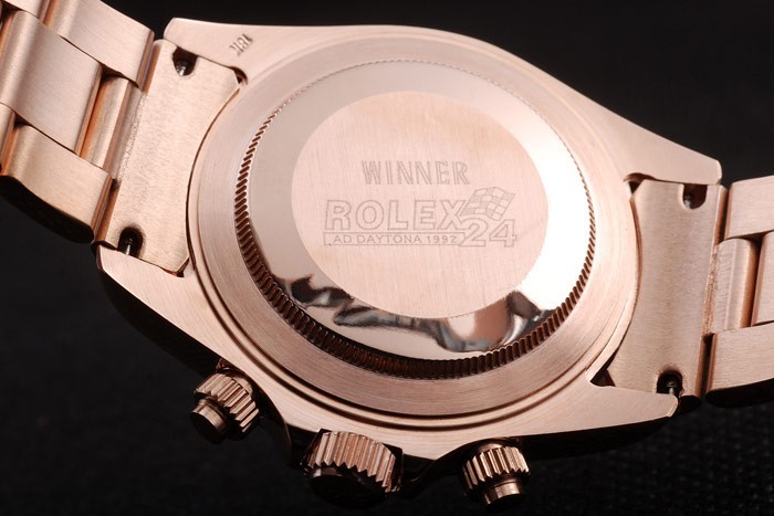 Back: 18k rose-gold plated push-in case back with Rolex inscription