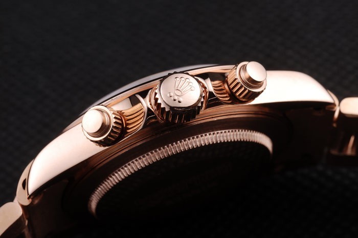 Crown: 18k rose-gold cutwork crown with Rolex logo and smaller crowns on either side of it
