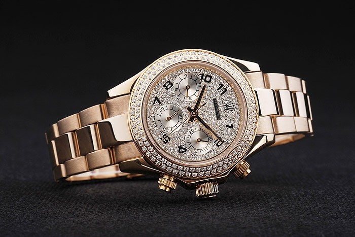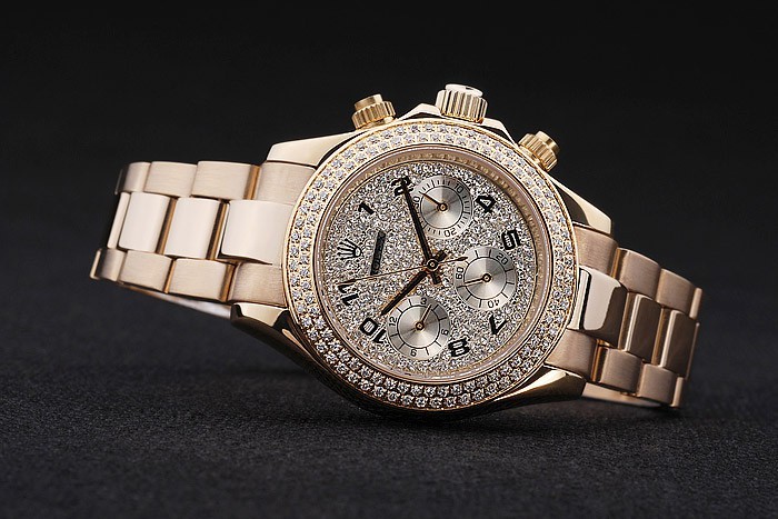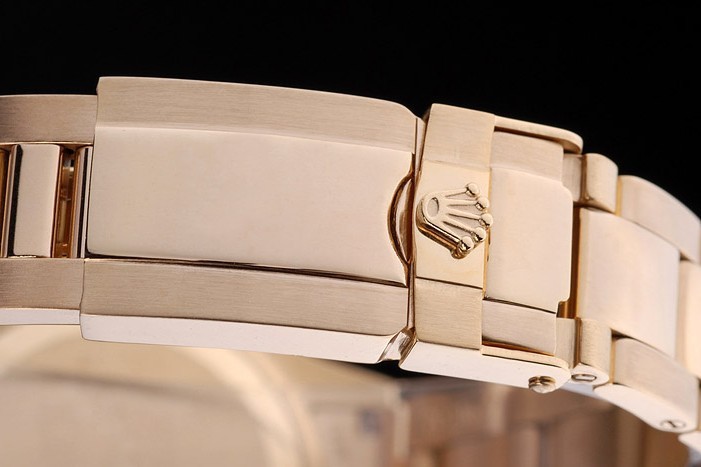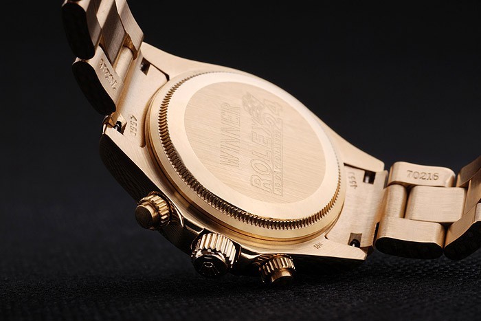 Back: Gold-toned stainless steel push-in case back with Rolex engraving