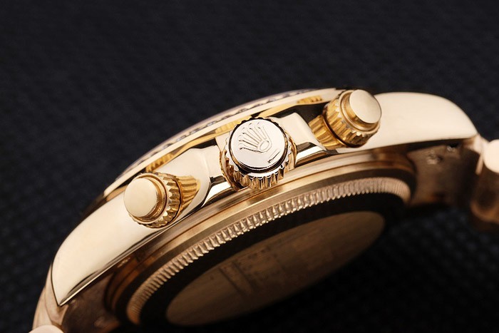 Crown: Gold toned cutwork crown with Rolex logo and two additional crowns on either side of it