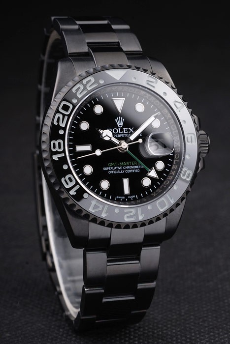 Bracelet: Ion-plated stainless steel link bracelet with Rolex engraved fold-in deployment clasp displaying the Rolex logo